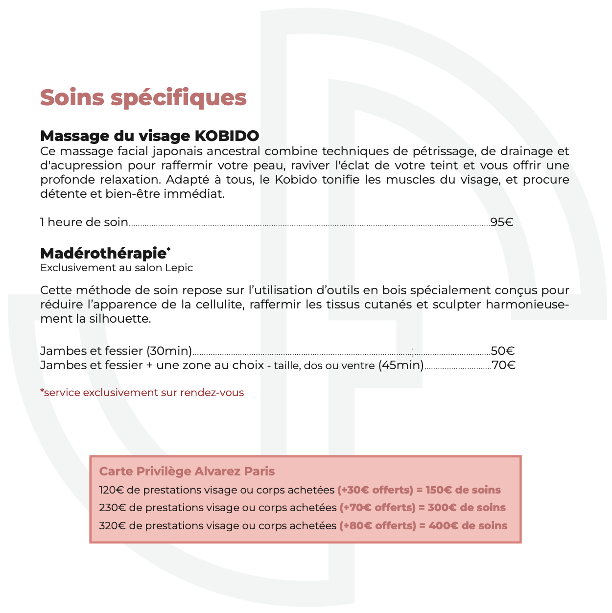 Services esthétique Alvarez Paris